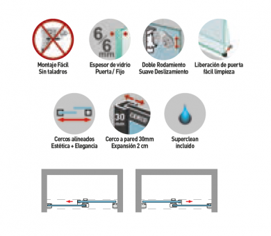 Mampara de ducha 1 Fijo + 1 Puerta corredera