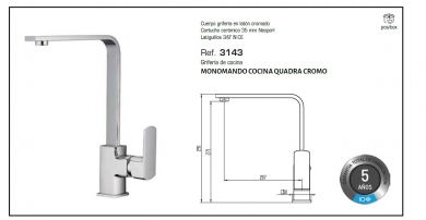 GME GRIFERIA COCINA MONOMANDO MODELO QUADRA NOVEDAD 3143