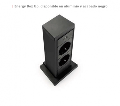 El energy box Up es la solución vertical de pie (no sólo) para la mesa con 2 enchufes y
