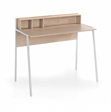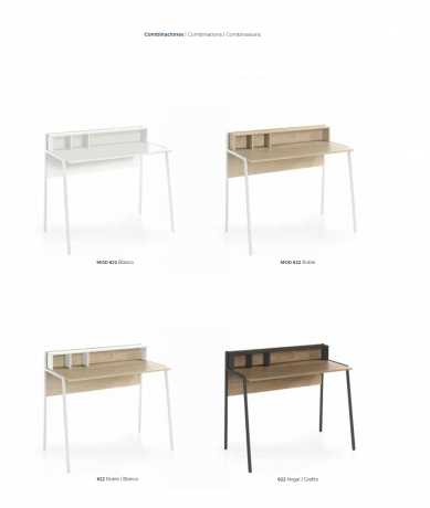 Escritorio fabricado en melamina, de líneas simples y fluidas con las patas en metal tratadas para evitar la