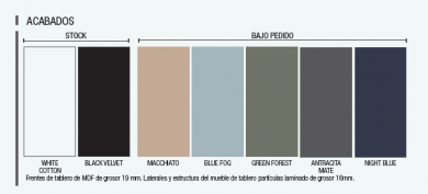 Los acabados en Blanco y Negro, esta en stock, plazo de entrega de 5 a 8 días, el resto de acabados el plazo de