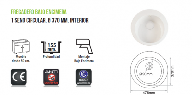 Fregadero Sintético, se puede instalar sobre o bajo encimera,