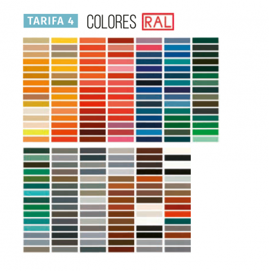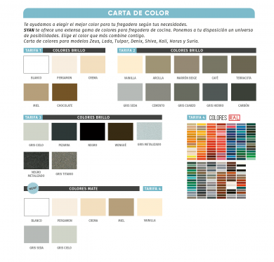 Vainilla, Arcilla, Marrón Beig, Café, Terracota, Gris Seda, Cemento, Griz Cuarzo, Gris Hierro, Carbón.