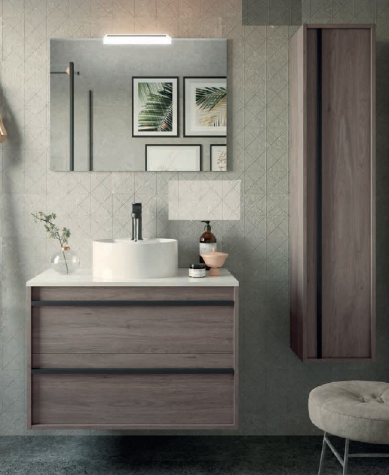 Encimera de laminado en el mismo acabado que el mueble, tambien se puede elegir lavabo sobre encimera.