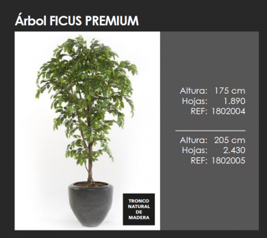 Árbol ficus PREMIUM de elegante acabado que le proporciona cierto protagonismo a la hoja y que