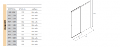 Mampara frontal 1 fijo 1 corredera kaavi. Salgar