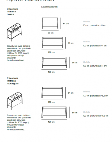 Encimera de baño medidas de 80,100,120cm profundidad de 48cm, altura 84cm