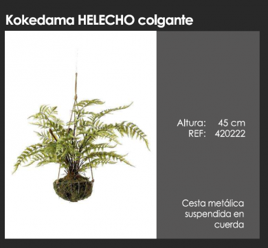 musgo. La Kokedama HELECHO colgante artificial en bola de musgo se suministra con