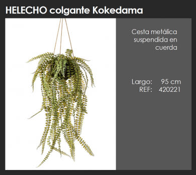HELECHO colgante de techo artificial con musgo en malla de alambre. Planta colgante de alto