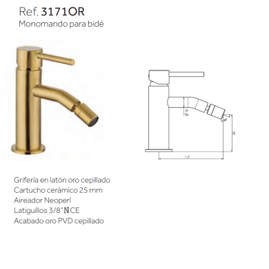 GRIFO OROR CEPILLADO DE BIDE SIRIO GME 3171OR