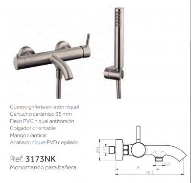 MONOMANDO PARA BAÑERA SIRIO NIQUEL GME 3173NK