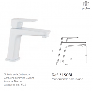GRIFO DE LAVABO MODELO MARRIOT BLANCO GME 3150BL