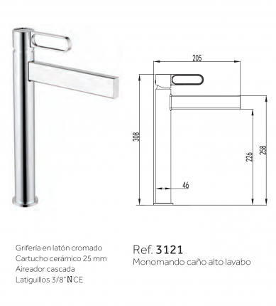 GRIFO DE LAVABO CAÑO ALTO CROMO SERIE DIOR GME 3021