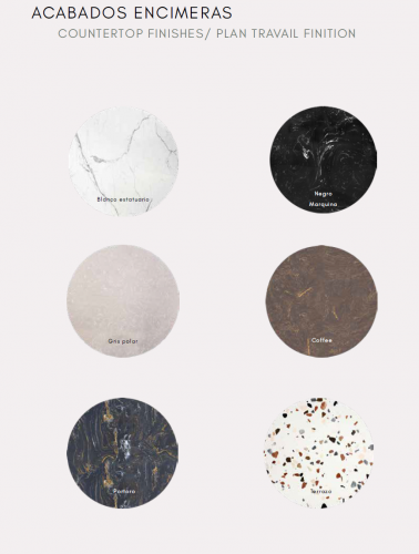 Se puede combinar con lavabo encastrado , encimera de Laminado, Encimera de Solid o Piedra.