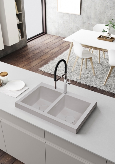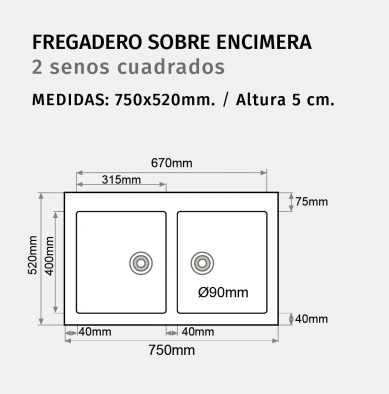FREGADERO SOBRE ENCIMERA2 senos cuadrados