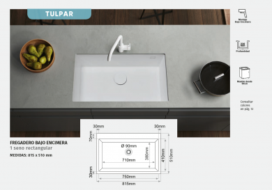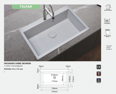 FREGADERO SOBRE ENCIMERA / 1 SENO RECTANGULAR