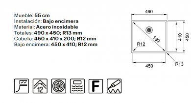 - Bajo encimera: 45 x 41 cm R: 12 mm
