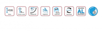 Esta mampara de ducha abatible, perfilería en aluminio acabado negro mate, vidrio templado