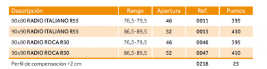 Hojas correderas auto-limpiables; perfil compensación extensible 2,5 cm.