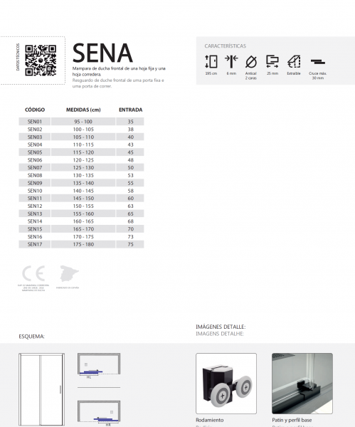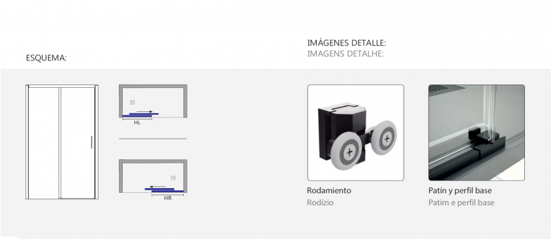 Mampara frontal 1 fijo y 1 puerta corredera.
