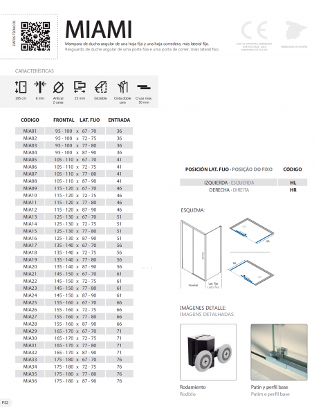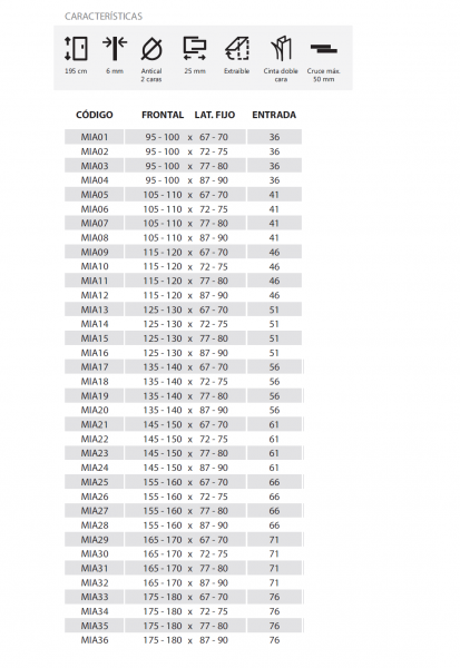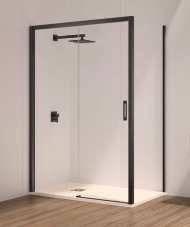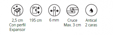 Mampara frontal 1 fijo y 1 puerta corredera, y 1 Fijo lateral