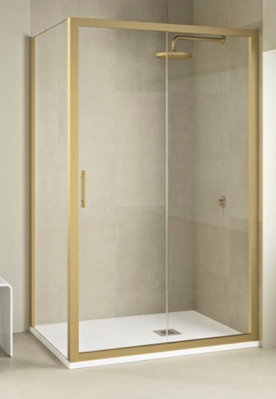 Mampara frontal 1 fijo y 1 puerta corredera, y 1 Fijo lateral