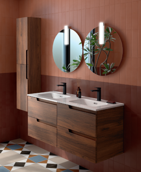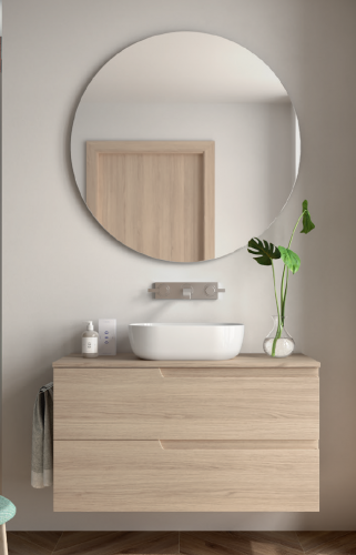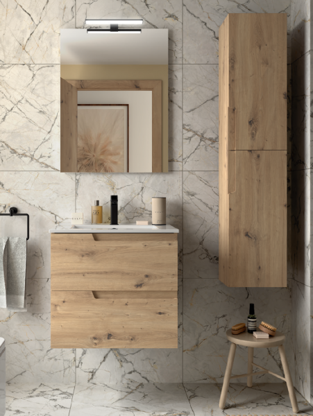 El mueble de baño Vima de Salgar combina diseño moderno y funcionalidad, siendo una solución ideal para baños actuales. Se trata de un mueble suspendido disponible en 60, 80, 100 y 120 cm, fabricado con materiales de alta calidad y un acabado elegante.
