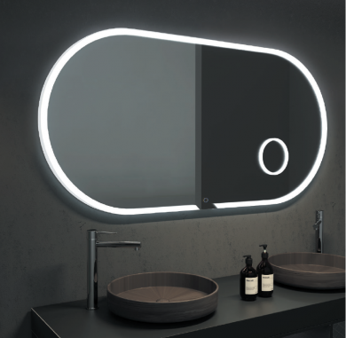 Espejo elíptico con marco iluminado acrílico y enciendo / apagado secuencial que combina diseño con