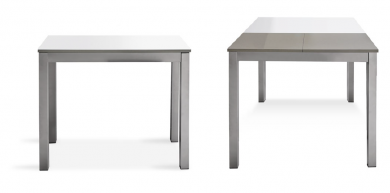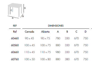 Mesa con extensible frontal de 30cm oculto, el extensible aparece cuando desplazamos las patas de la mesa, las cuales incorporan una