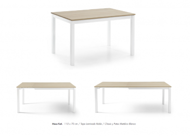 Mesa con extensibles oculto, se extiende con apertura laterales de de 60cm, con patas deslizantes con ruedas.