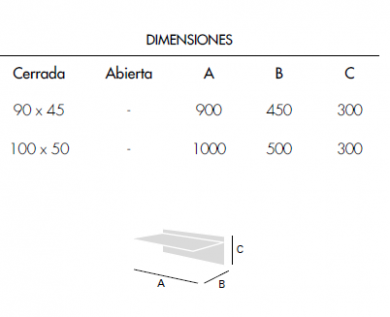 Extensible de laminado y cristal de 90x45 o 100x50cm