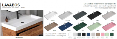 Lavabo de resina disponible en los mismos acabados que los muebles, (indiquenos el acabado del lavabo en el apartado de observaciones de su pedido) o lavabo de cerámica,