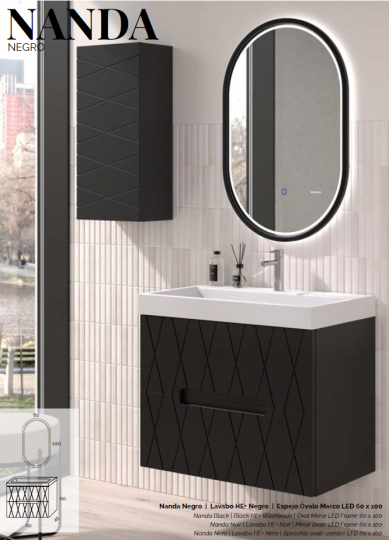 Opcional espejo luna lisa, o con luz led o Marco metálico