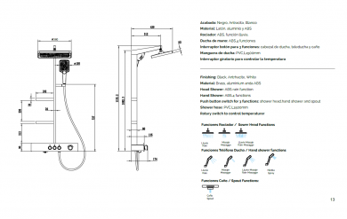 Ducha de Mano: ABS: 4 Funioes