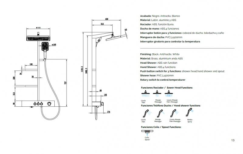 Interruptor boton para 3 funciones: cabezal, teleducha y caño