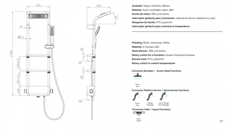 Interruptor boton para 3 funciones: cabezal, teleducha y caño