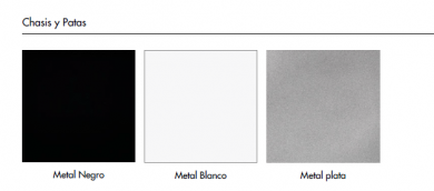 Estructura y patas metálicas acabados, en blanco texturizado y plata.
