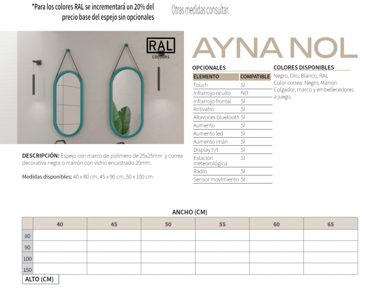 la distribución de espejos fabricados “a la carta”, dotados de amplias posibilidades técnicas.