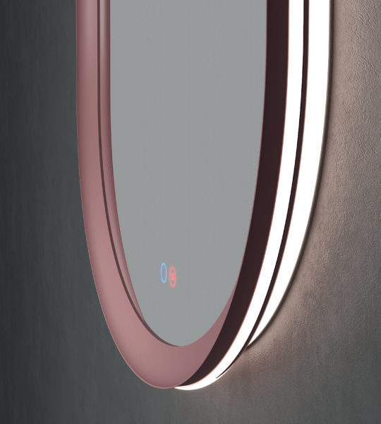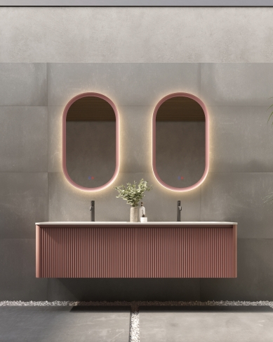 Espejo elíptico, con doble tira led retroiluminada y perimetral.