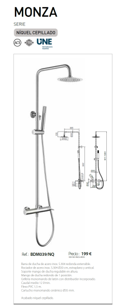 Rociador de acero inox. S.304 Ø20cm, extraplano y antical.