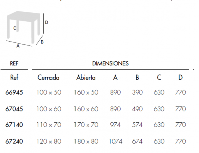 Abierta: 160x50, 160x60 o 170x70 cm, respectivamente.
