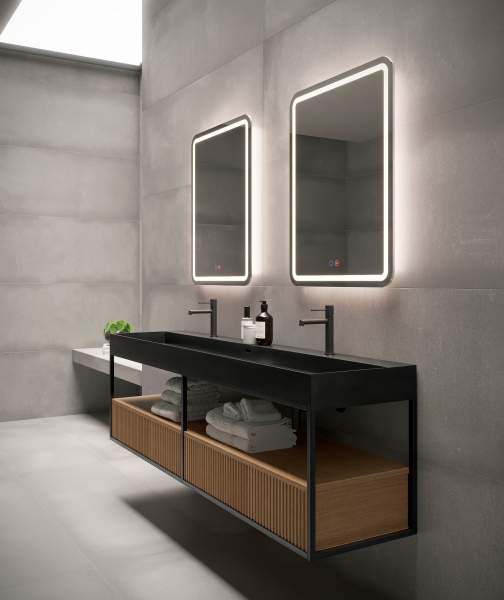 Espejo cuadrado con cantos redondeados.