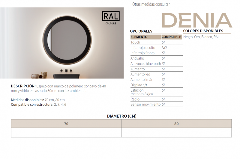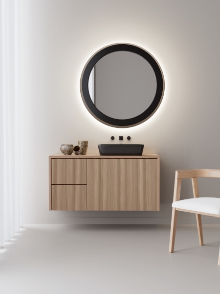 Espejo con marco de polímero cóncavo de 40mm y vidrio encastrado 30mm con luz ambiental