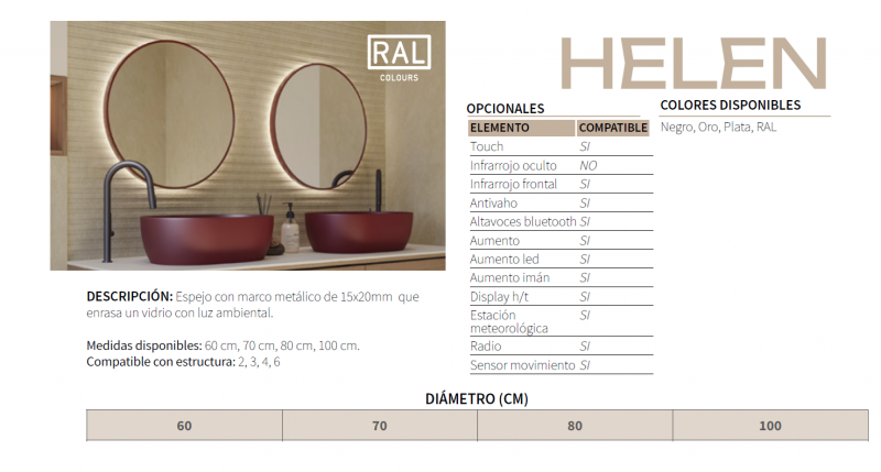 60 Ø cm / 70 Ø cm / 80 Ø cm / 100 Ø cm