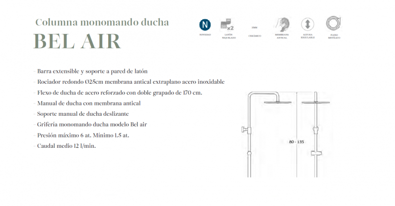 - Grifería monomando ducha modelo Bel air