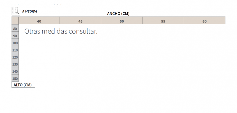ANCHO.Desde 40 hasta 60 cm. ALTO.Desde 80 hasta 150 cm.