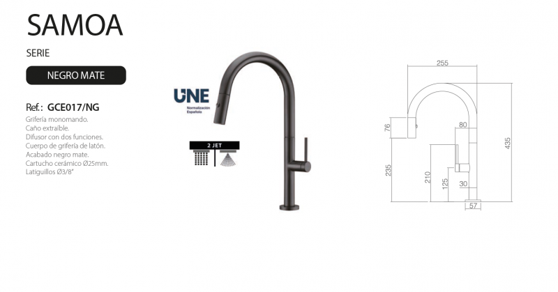 Grifería de cocina monomando extraíble negro mate serie Samoa