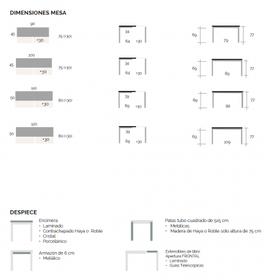 Mesa Extensible Encimera lamindado. Mesinor
