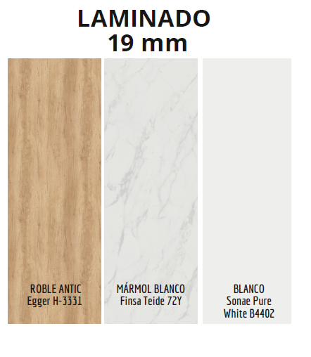 La mesa cuenta con una estructura de laminado de 60 cm, que aporta estabilidad y solidez, disponible en: