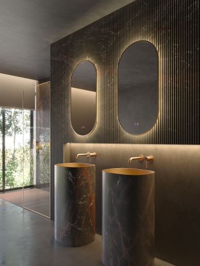 El espejo elíptico TOKYO aporta suavidad y equilibrio, rompiendo con las líneas rectas habituales de los baños tradicionales. Su forma estiliza el espacio, añade elegancia y se convierte en un elemento decorativo por sí mismo. En Ledimex creemos que el espejo no solo ilumina y amplía visualmente el baño, sino que también refleja la personalidad y estilo de quienes lo usan.